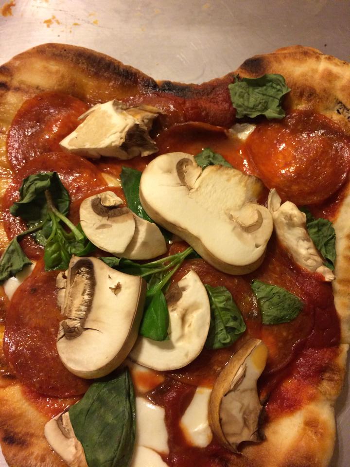 Once you make the pizza you realize that the cooking is so fast that I cook my mushrooms before topping them. I now just put the mushrooms on after the pizza is done. On my pizza I usually make an arugula salad with balasmic and olive oil to put on my pizza.