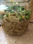 This kimchee is one of the easier ones to make since I don’t need to wilt the veggie in salty water like the traditional cabbage kimchee. It is an all day event to make cabbage kimchee.